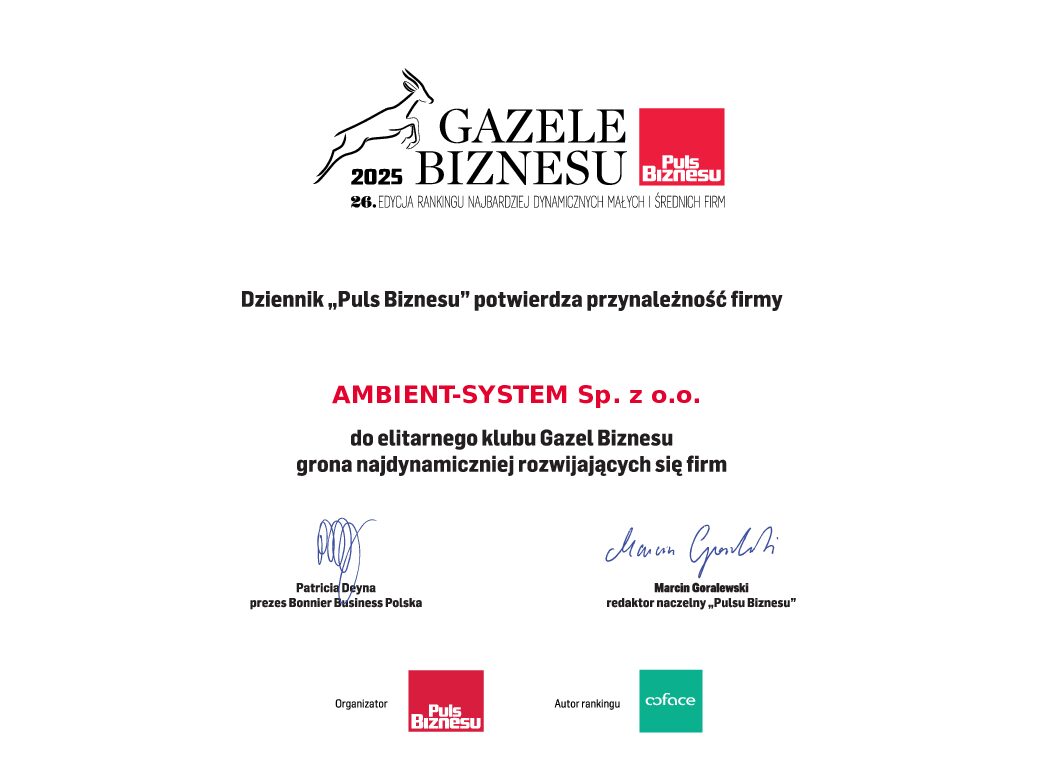 Znaleźliśmy się w gronie laureatów Gazele Biznesu — jednego z najbardziej cenionych w Polsce rankingów firm rozwijających się dynamicznie i transparentnie. To wyróżnienie potwierdza to, co napędza nas każdego dnia: stabilny wzrost, niezawodność i solidne fundamenty finansowe.