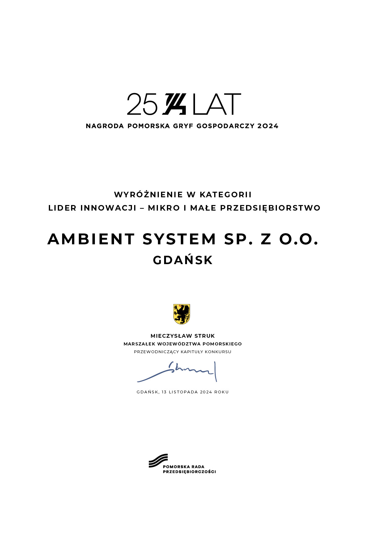 Nagroda Gryf Gospodarczy to jedno z najważniejszych wyróżnień biznesowych na Pomorzu, celebrujące innowacyjność, wpływ na gospodarkę regionu oraz wkład w rozwój lokalny. Jesteśmy dumni, że możemy reprezentować Pomorze zarówno na scenie regionalnej, jak i krajowej. To wyróżnienie jest potwierdzeniem, że lokalna innowacja ma potencjał, by tworzyć globalny wpływ, a system smartVES jest tego najlepszym przykładem. Dziękujemy za zaufanie i wsparcie, które napędza nas do dalszego tworzenia przyszłościowych rozwiązań w branży bezpieczeństwa.